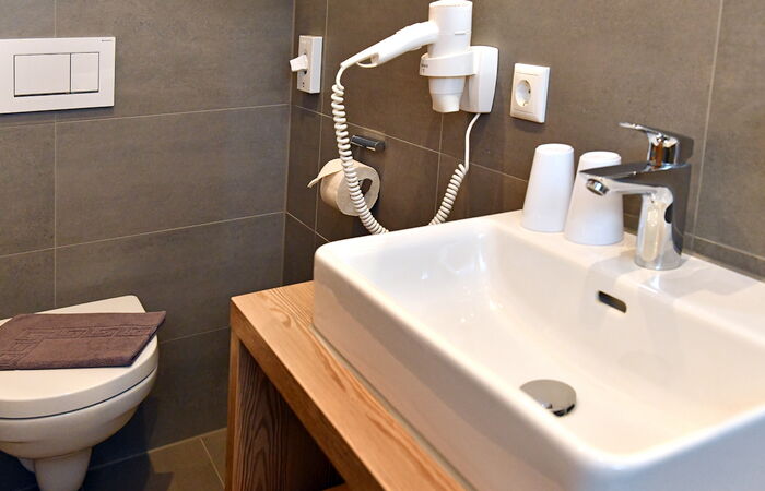 Bad mit Dusche, WC & Föhn
